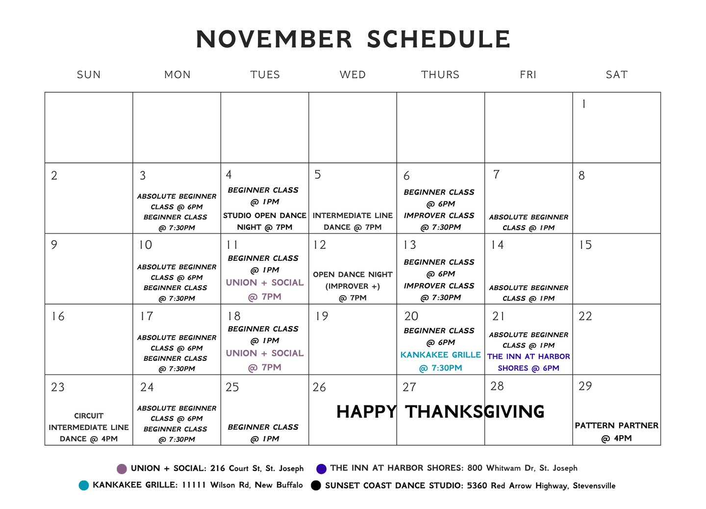 Sessions will run for four weeks, one class per week. Classes are located at the Sunset Coast Dance Studio. Pre-registration is highly encouraged, and the cost is $40 ($10/class). Classes will be limited to 20 dancers, first come first serve based on registration.